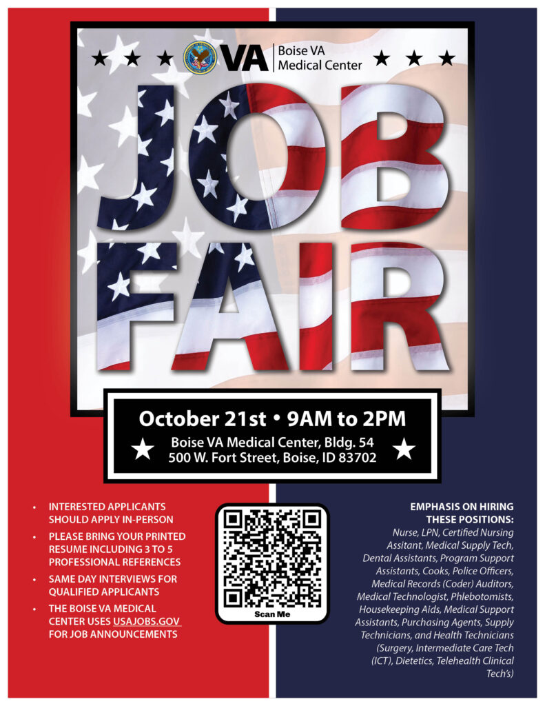 « All Events This event has passed. VAMC Job Fair October 21, 2023 @ 09:00 - 14:00 « Women Veteran Health Fair and BBQ Operation Grateful Hearts Pumpkins & Raffle » Post Views: 0 Add to calendar Google Calendar iCalendar Outlook 365 Outlook Live Details Date: October 21, 2023 Time: 09:00 - 14:00 Event Category: BoiseVA Event Tags:BVAMC, JobFair Venue Boise VAMC 500 W. Fort St. Boise, Idaho 83702 + Google Map